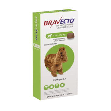 • ברבקטו לכלבים ענקיים (40-56 ק”ג)Bravecto – flea and tick chewable tablet for medium dogs (10-20 kg)