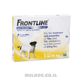 אמפולות הדברה ומניעת פרעושים וכינים על גוף הכלב ובסביבתו. טיפות פרונטליין מיועדות לכלבים בגיל 8 שבועות ומעלה השוקלים עד 10 ק”ג (גזע קטן).