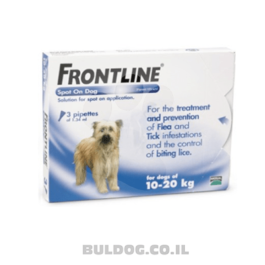 אמפולות הדברה ומניעת פרעושים וכינים על גוף הכלב ובסביבתו. טיפות פרונטליין מיועדות לכלבים בגיל 8 שבועות ומעלה השוקלים 10 עד 20 ק”ג (גזע בינוני).