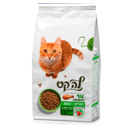לה קט עוף זמין באריזה מונעת חמצון – לשמירה על טריות המוצר לאורך זמן, במשקל 9 ק”ג, 2.85 ק”ג, 1.5 ק”ג ו-400 גרם.