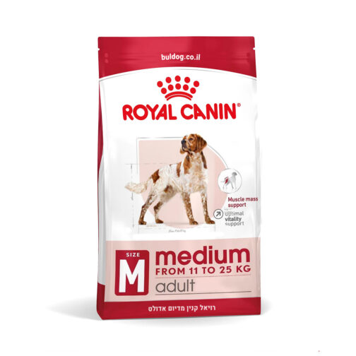 רויאל קנין מדיום אדולט – מזון יבש מלא לכלבים בוגרים בגודל בינוני (11–25 ק”ג), מגיל שנה ועד 7 שנים. תומך בשמירה על רמת אנרגיה מאוזנת, מערכת עיכול בריאה ומערכת חיסון חזקה בתקופת החיים הפעילה של הכלב.