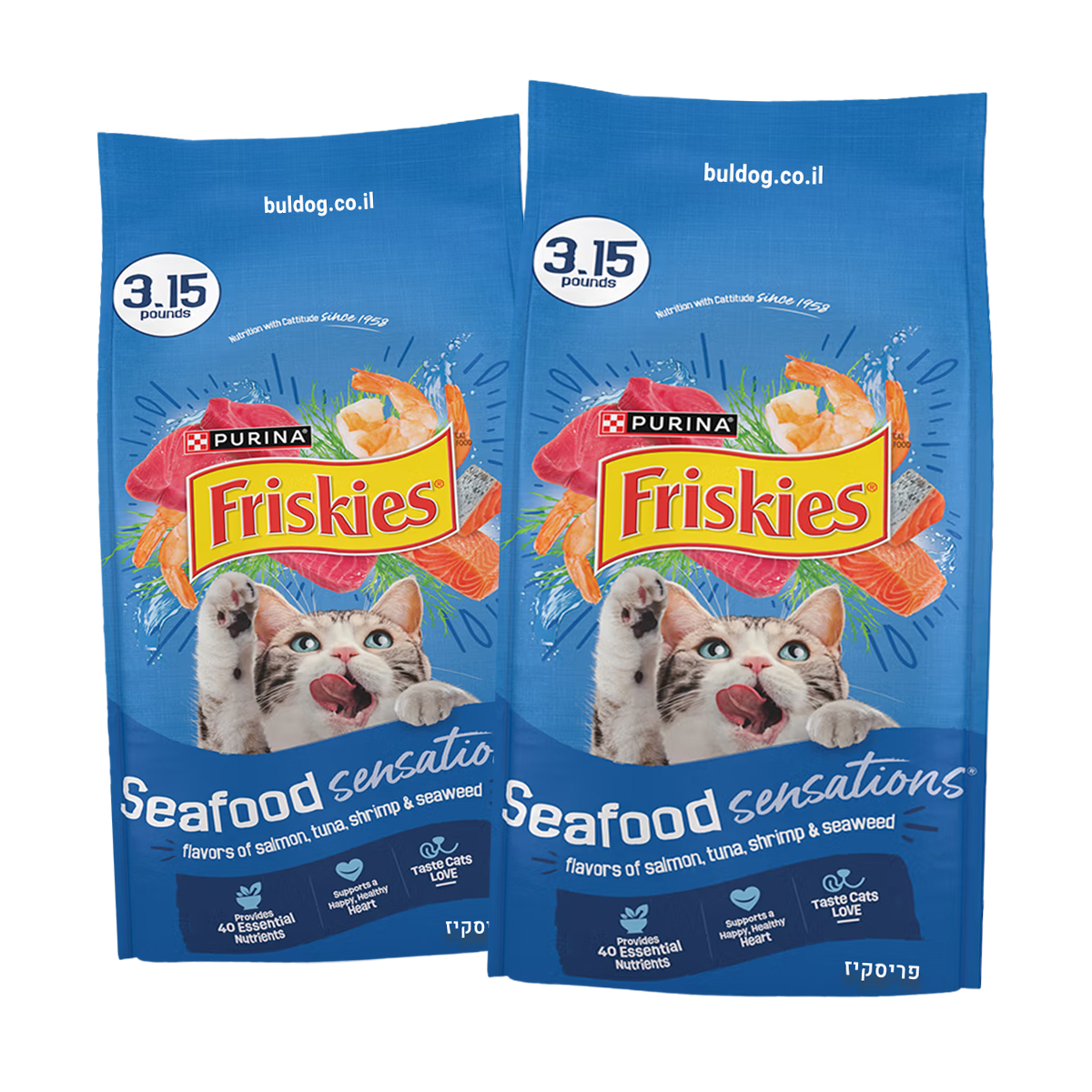 פריסקיז מעדני הים – מזון יבש מלא לחתולים בוגרים בטעם סלמון, טונה, סרטנים ואצות ים. פורמולה עשירה בטעמים אהובים מהים, בתוספת אצות, ויטמינים, מינרלים וטאורין – לתמיכה בבריאות הפרווה, העיניים, הלב ומערכת החיסון.