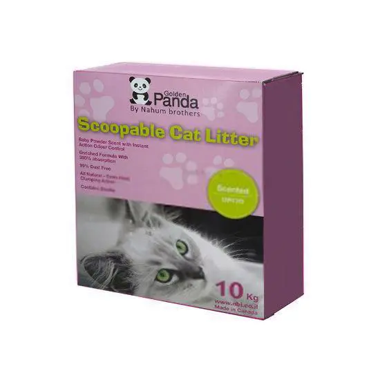 חול מתגבש לחתול מבושם, תוצרת גולדן פנדה ארוז בקרטון תוצרת קנדה.