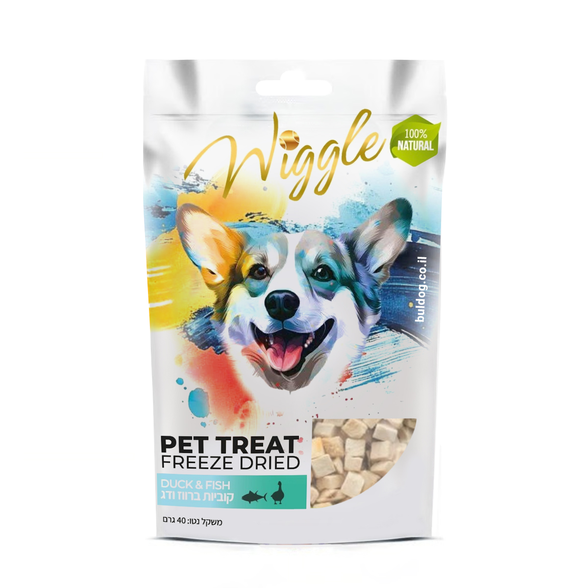 חטיף לכלב וויגל קוביות ברווז ודג מיובש בהקפאה 40 גרם