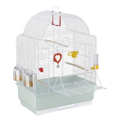 כלוב לתוכים האכלת יד, הכולל 3 מתקני עמידה, 2 קערות אוכל, כלי לתפיסת פירות, מראה עם פעמון, נדנדה וכלי מים. מגש נוח לשליפה לנקיון. מיועד לקוקטילים, פינקים, ציפורי אהבה ועוד.