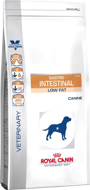 GASTRO-INTESTINAL LOW FAT מזון מלא ודיאטטי לכלבים, שנועד לווסת את חילוף חומרים בדם במקרים של שומנים. אוכל זה הוא דל שומן ובעל תכולה גבוהה של חומצות שומן חיוניות.
