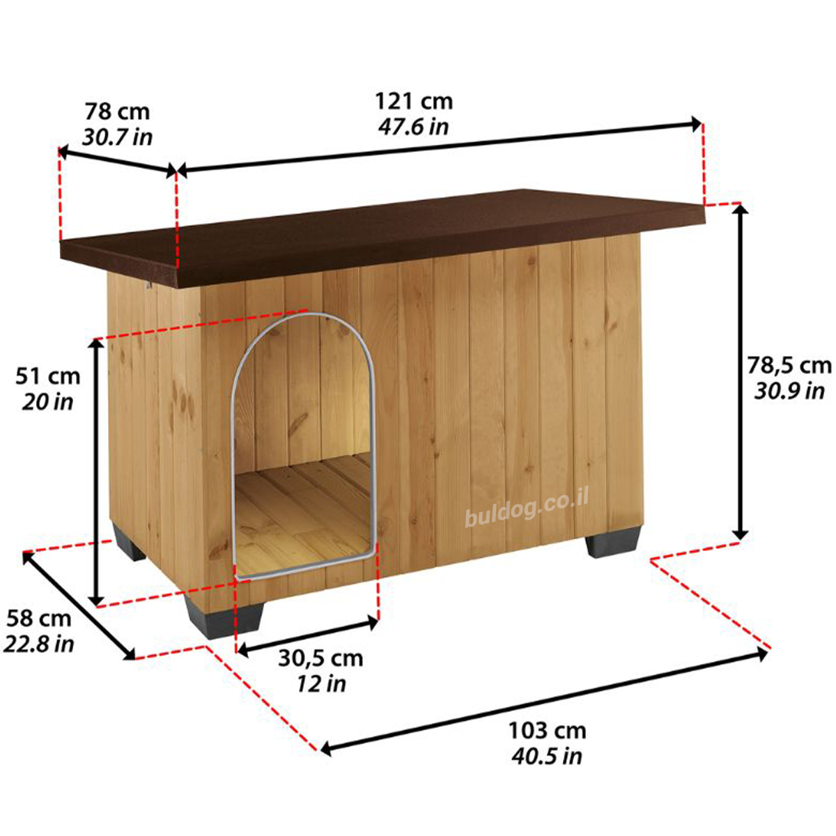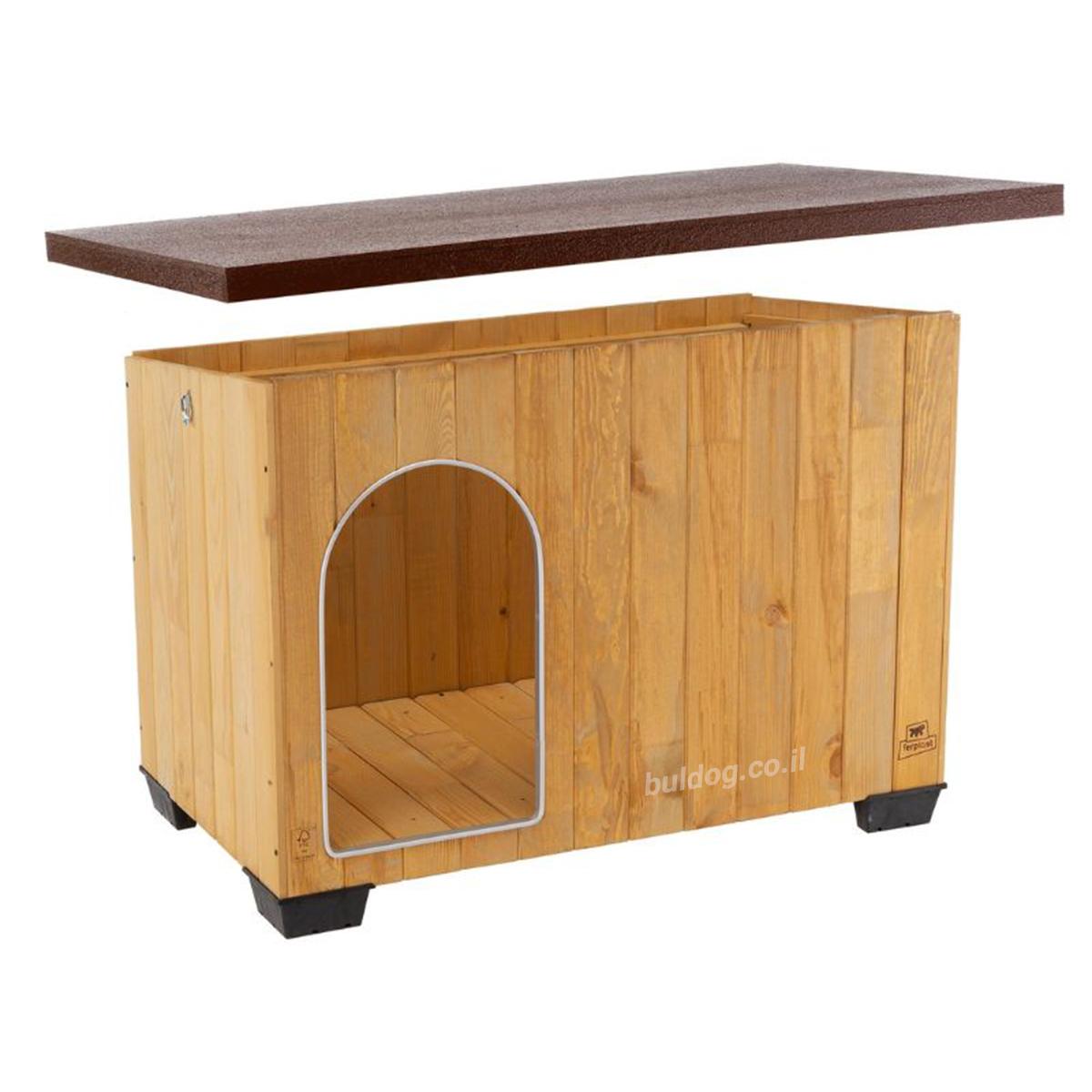 מלונת בטה (Baita) 100 של פרפלסט (אורך 121 ס”מ כולל גג, 103 ס”מ נטו) – מלונה מעץ איכותי, מושלמת לכלבים בינוניים וגדולים (עד כ־40 ק”ג). המלונה מוגבהת ומבודדת מהקרקע, עם גג נפתח לניקוי קל, ועיצוב עמיד שמתאים לכל מזג אוויר. נראית נהדר בחצר, מרגישה לכלב כמו בית אמיתי.