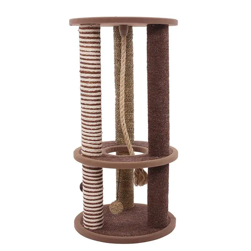 מתקן גירוד לחתול שלושה מפלסים עם חבל טיפוס.