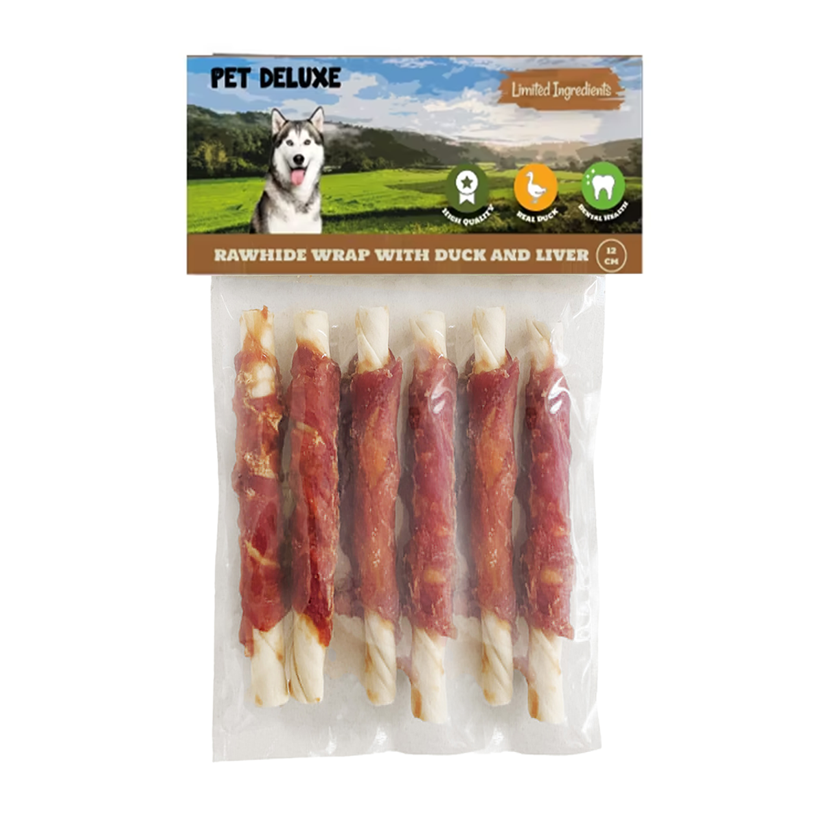 חטיף פט דלוקס מקלוני עור עם מילוי כבד בציפוי ברווז