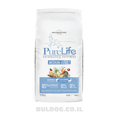 מזון ללא דגנים פיור לייף בוגר בינוני הוא מזון מלא לכלבים בוגרים (לכל גזעי הכלבים ששוקלים בין 11 ק”ג ל25 ק”ג), מתאים גם לכלבים רגישים.
