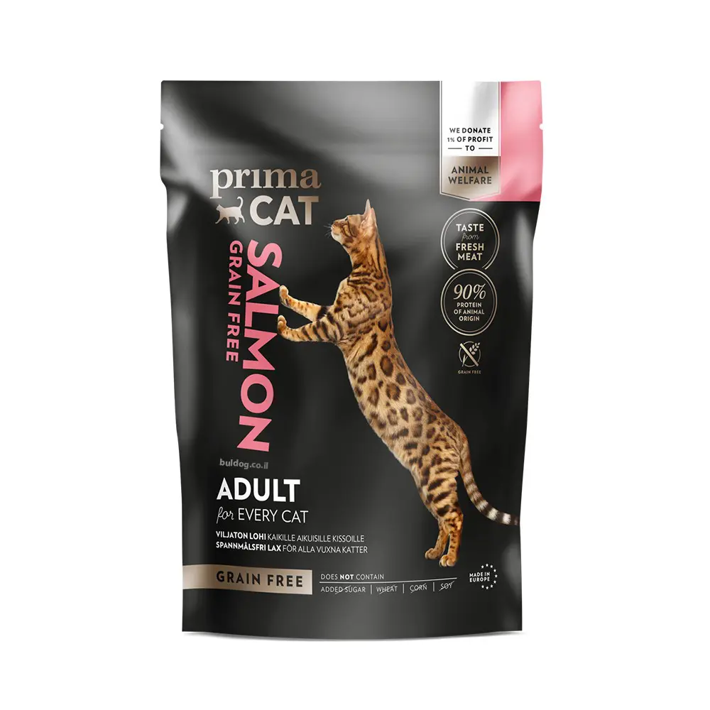 פרימה קט סלמון ללא דגנים לחתולים בוגרים.