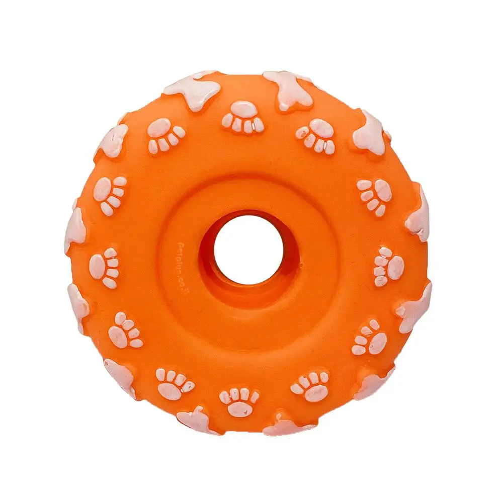צעצוע לכלב בצורת גלגל עם צפצפה פנימית.